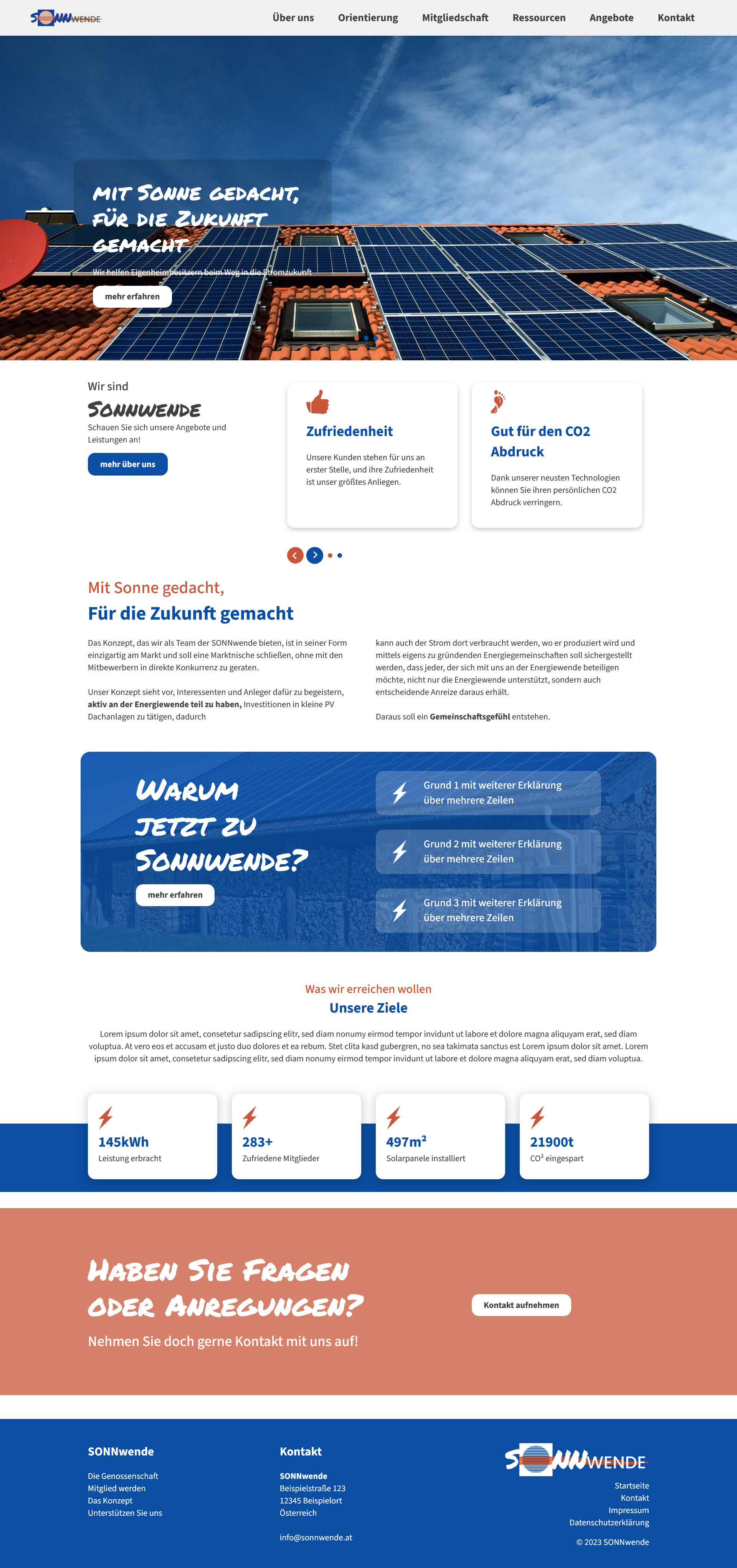 Dieses Projekt wird eines Tages eines meiner absoluten Prestigeprojekte sein. Bei "SONNwende" habe ich so ziemlich von Anfang an mitgewirkt. Das Design wurde in Rücksprache erstellt und auch gleich umgesetzt. Zusätzlich entsteht gerade parallel eine Plattform, die datenbankgestützt funktioniert. Leider ist diese Referenz aus rechtlichen Gründen aktuell noch nicht für die Öffentlichkeit einsehbar. Schau zu einem anderen Zeitpunkt nochmal vorbei!